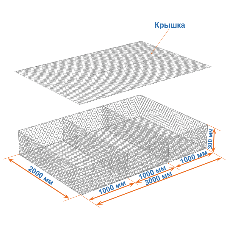 Габион матрац ГСИ-М 3х2х0,3 оцинкованный, Ø проволоки 2,4 мм, размер ячейки 6х8 см